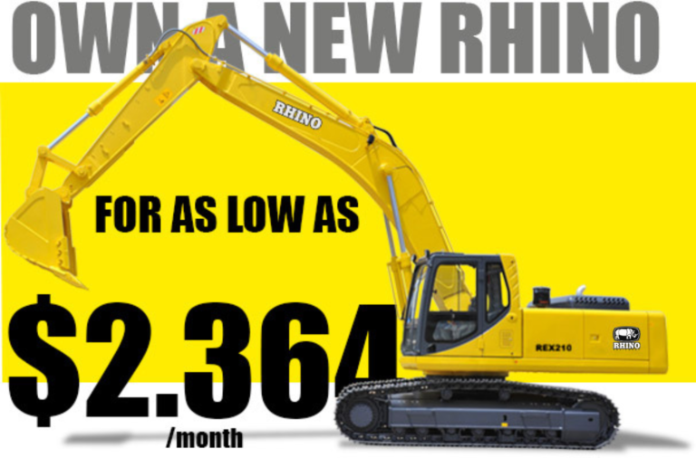 All Rhino® branded equipment and accessories are eligible for the Rhino® Machinery line 0% financing. Rhino® Equipment, however, are eligible for the “Rhino® Equipment lender relationships standard interest rate.*” contact us at: 1 855 744 6650 or email us at financial@rhinoeq.com.